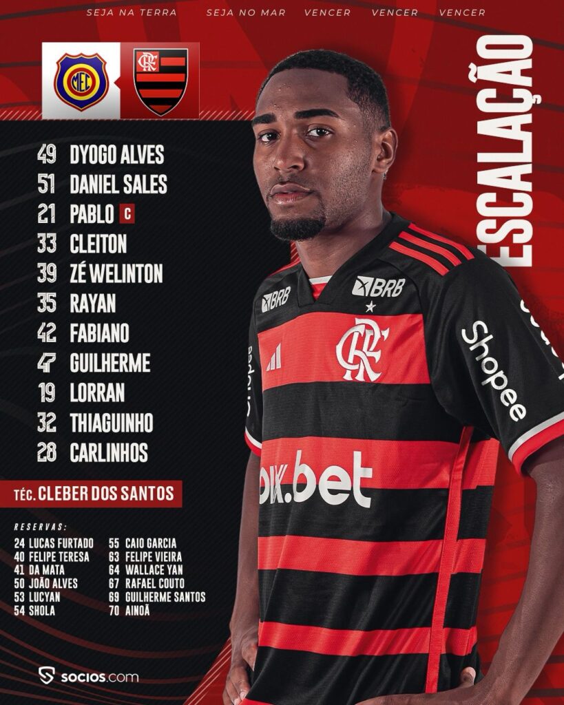 Rubro-Negro repete formação que estreou diante do Boavista, em Aracaju