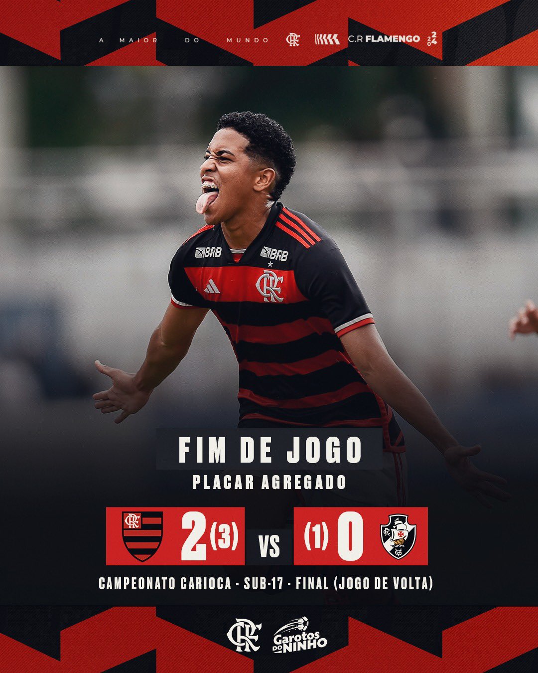 Deu Flamengo na grande decisão do Campeonato Carioca sub-17 de 2024. Depois do empate com o Vasco em 1 a 1 no jogo de ida, as equipes se reencontraram na manhã deste sábado, na Gávea. E com gols de Joshua e Cristian, o time da casa ficou com título.