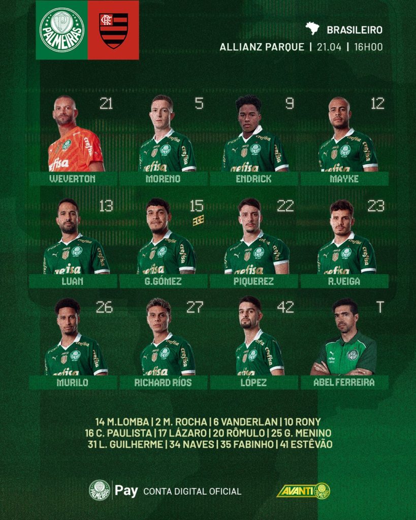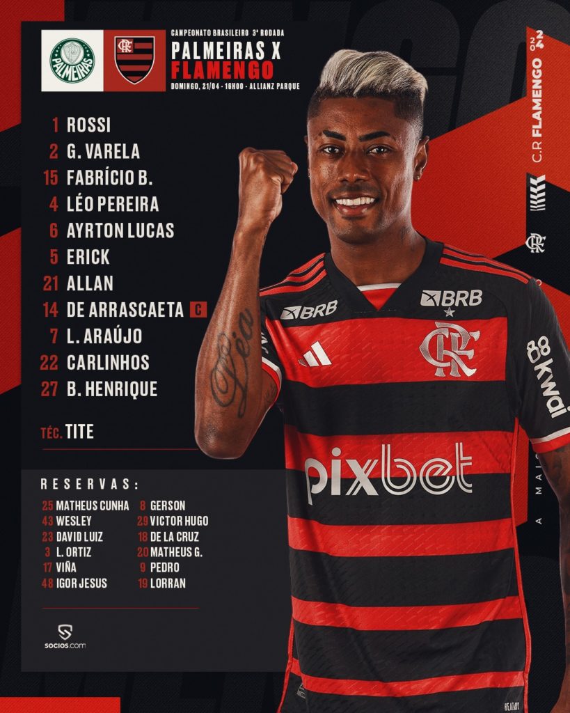 Com Carlinhos e Allan titulares, Flamengo está escalado para enfrentar o Palmeiras