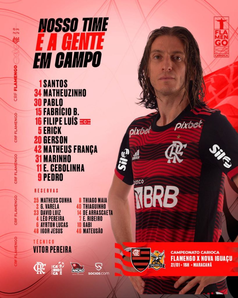 Com reservas em campo, Flamengo está escalado para enfrentar o Nova Iguaçu