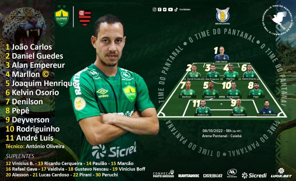 Confira a escalação do Flamengo para a partida contra o Cuiabá