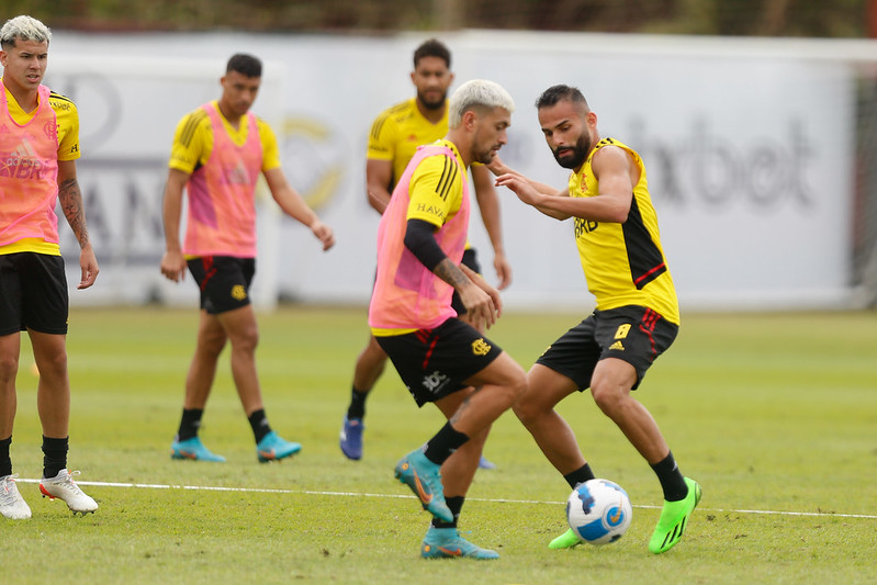 Com pouco tempo para lamentar o empate em 1 a 1 com o Ceará, o elenco do Flamengo se reapresentou na manhã desta segunda-feira e retomou a preparação para o jogo com o Vélez Sarsfield. Arrascaeta, preservado do jogo do fim de semana, treinou mais uma vez com bola e está nos planos de Dorival Junior para o time titular. O uruguaio não foi a campo na última sexta por conta de dores sentidas no pé direito após a primeira semifinal da Libertadores.