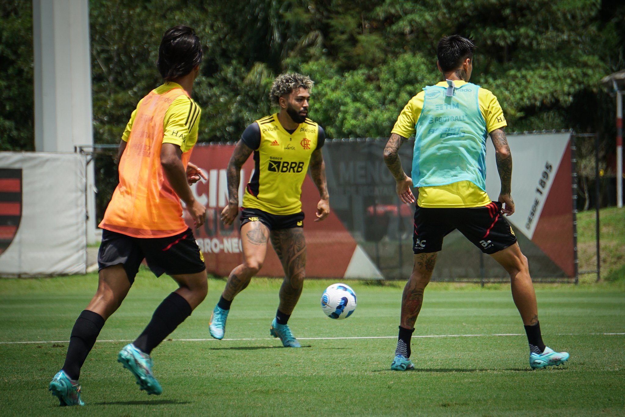 O Flamengo joga neste sábado pelo Brasileirão, contra o América-MG, em Belo Horizonte, mas a manhã foi de treinamento no Ninho do Urubu. Com o técnico Dorival Jr, os titulares do elenco seguiram a preparação para a final da Libertadores, daqui a uma semana (29), contra o Athletico.