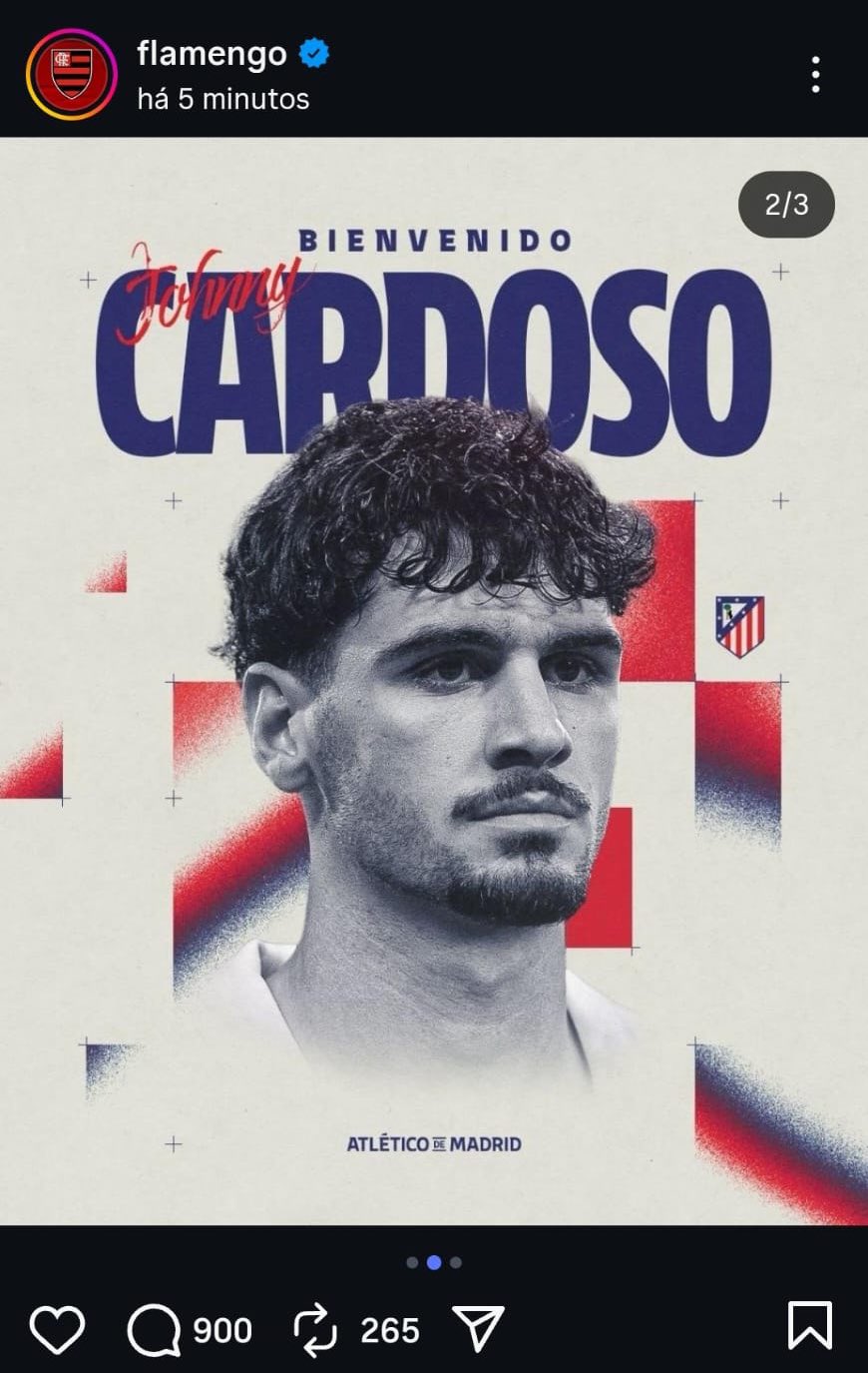 O equívoco ocorreu quando o Flamengo compartilhou, em seu canal oficial, uma sequência de imagens comemorando a permanência de Filipe Luís no comando técnico. Em meio às artes, houve a inserção de uma foto de Johnny Cardoso com a palavra “Bienvenido”, dando a impressão de que o volante estaria chegando ao clube. A publicação, no entanto, foi retirada do ar pouco depois.