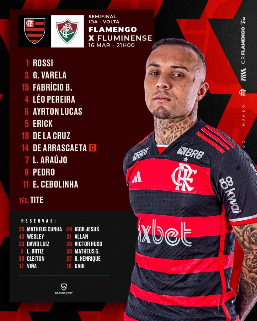 Flamengo e Fluminense se enfrentam na noite deste sábado (16), às 21h (de Brasília), no Maracanã, pelo jogo de volta da semifinal do Campeonato Carioca. Os dois times chegam em situações opostas, enquanto o Rubro-Negro terá força máxima, o Tricolor terá seis desfalques.