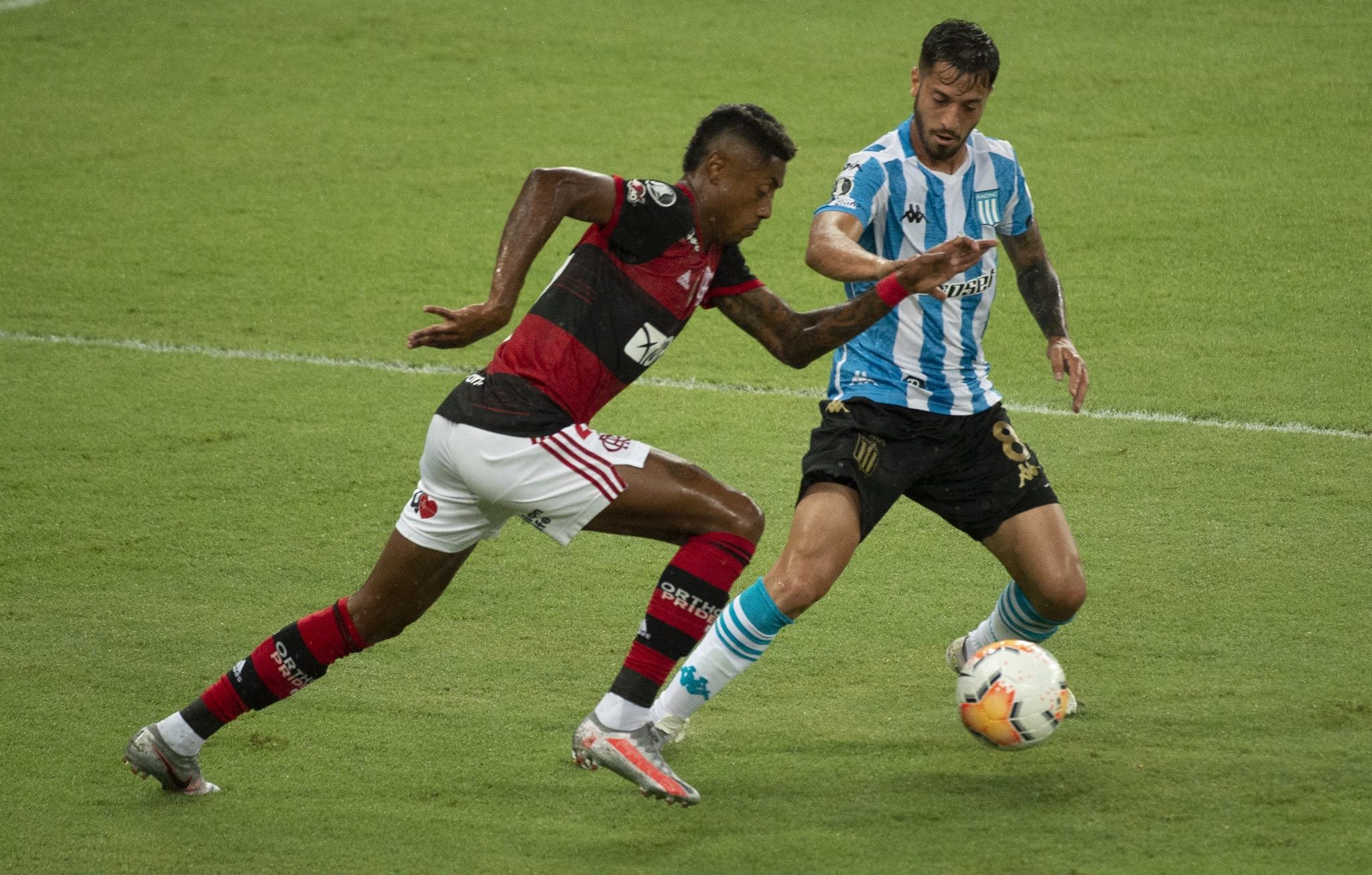 O primeiro tempo foi ataque contra defesa. Mesmo precisando marcar, o Racing ficou todo fechado, buscando um contra-ataque, e não assustou. O Flamengo, por sua vez, criou e desperdiçou ótimas oportunidades para marcar. A primeira foi logo aos 3 minutos, após escanteio de Arrascaeta, Gustavo Henrique desviou e Bruno Henrique, sozinho na pequena área, furou. Depois, Vitinho quase marcou um golaço, após recuperar a bola no campo de ataque, dar um chapéu no adversário e entrar na área, mas parou no goleiro.