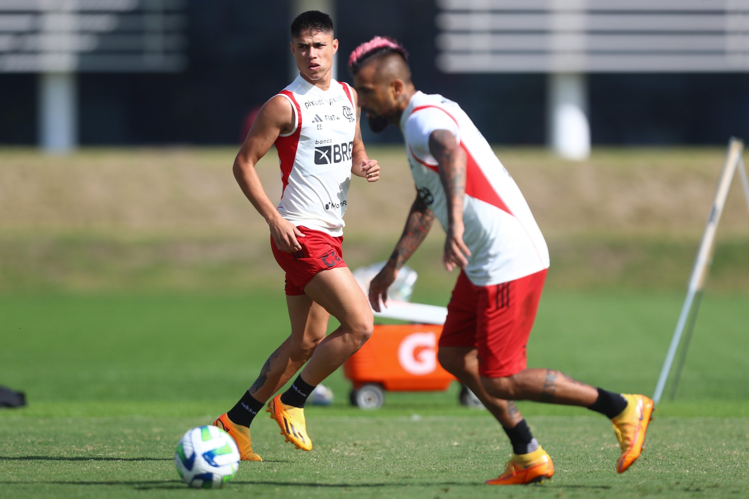 Nesta terça, no Ninho do Urubu, Gabigol e Léo Pereira não participaram da atividade com os demais jogadores do elenco. Ambos se recuperam das lesões sofridas no jogo com o Fortaleza, no último sábado, e são dúvidas. Pedro e David Luiz, respectivamente, são as opções imediatas caso as ausências sejam confirmadas.