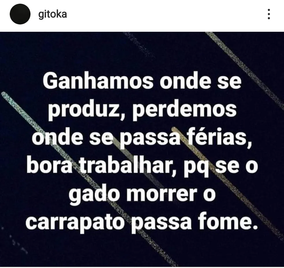 “Ganhamos onde se produz, perdemos onde se passa férias. Bora trabalhar porque se o gado morrer, carrapato passa fome” .
