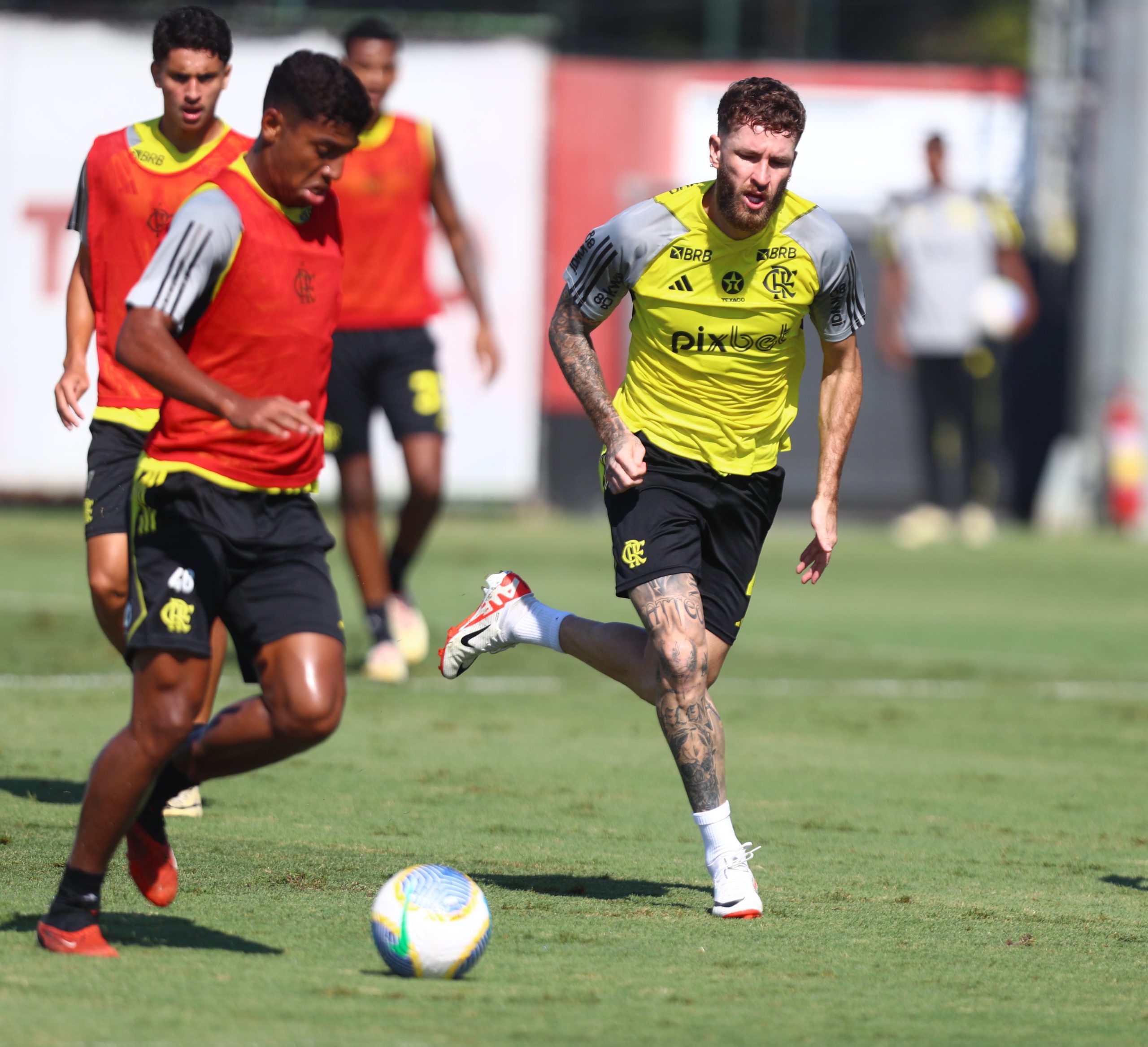 Léo Pereira treina com companheiros e deve enfrentar o Grêmio