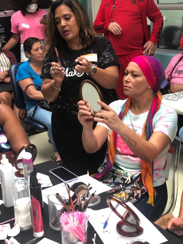 Iniciativa contou com maquiadoras e animadoras para estimular autoestima e empoderamento de pacientes com câncer de mama
