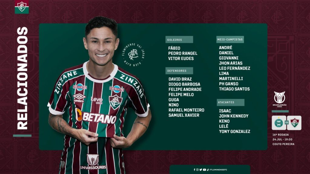 Fluminense divulga a lista de relacionados para a partida contra o Coritiba