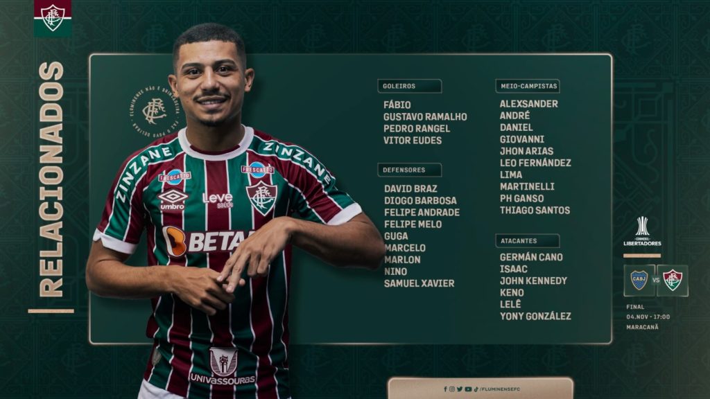 Na tarde deste sábado, às 17h, no Maracanã, o Fluminense enfrenta o Boca Juniors pela final da Libertadores com força máxima. Na lista de relacionados, Fernando Diniz tem os retornos dos zagueiros Nino e Felipe Melo, que devem aparecer no time titular do Tricolor para a partida.