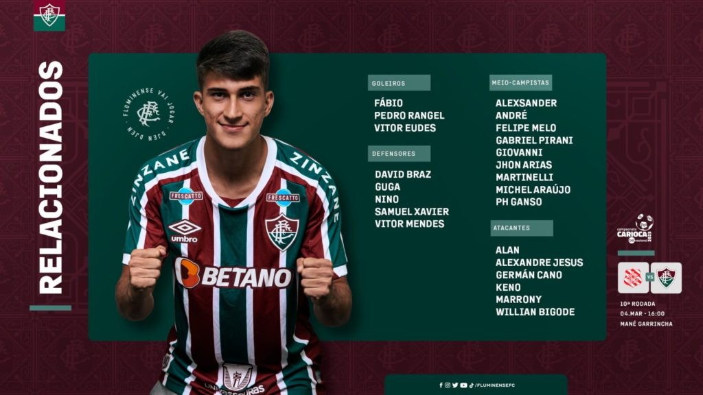 Fluminense divulga a lista de relacionados para a partida contra o Bangu