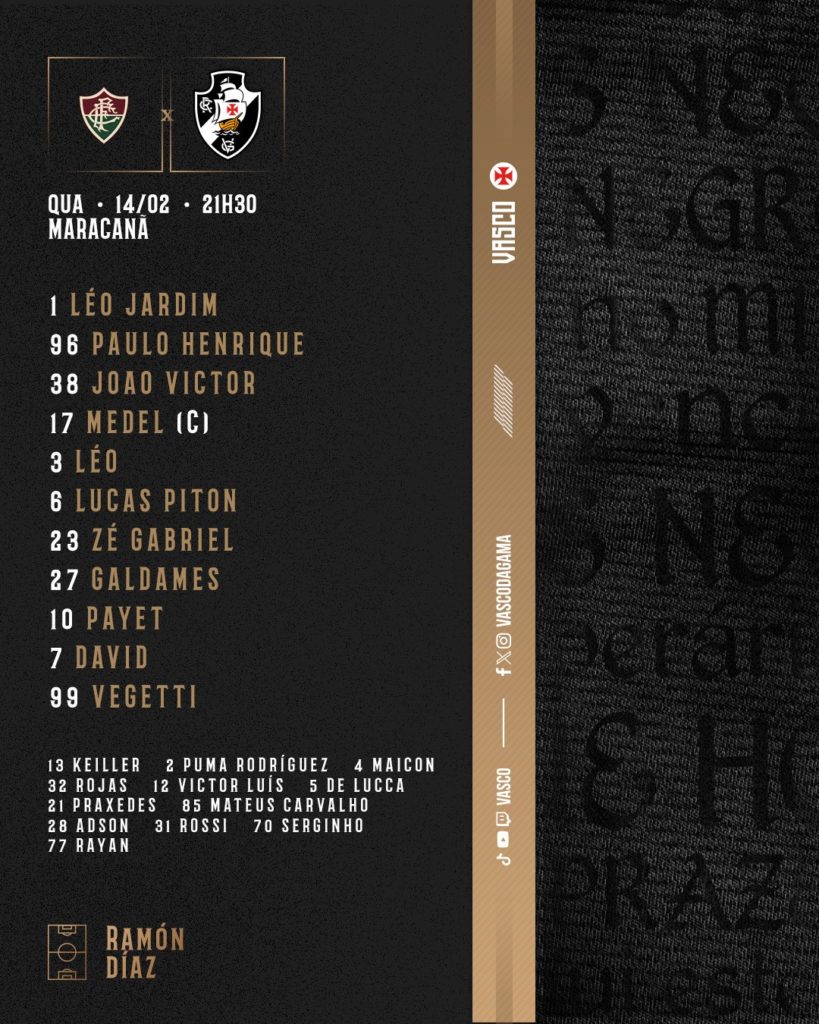 Fluminense e Vasco estão escalados para o clássico no Maracanã