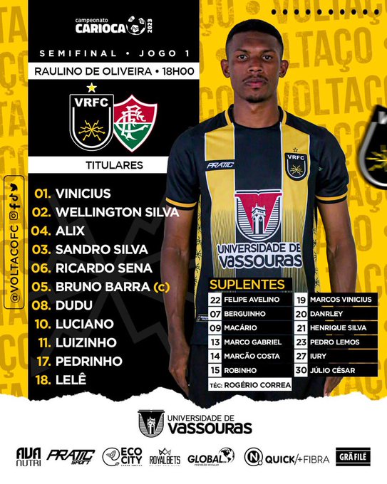 Volta Redonda e Fluminense divulgaram as escalações para o primeiro jogo da semifinal do Campeonato Carioca, neste domingo (12), às 18h, no Estádio Raulino de Oliveira.