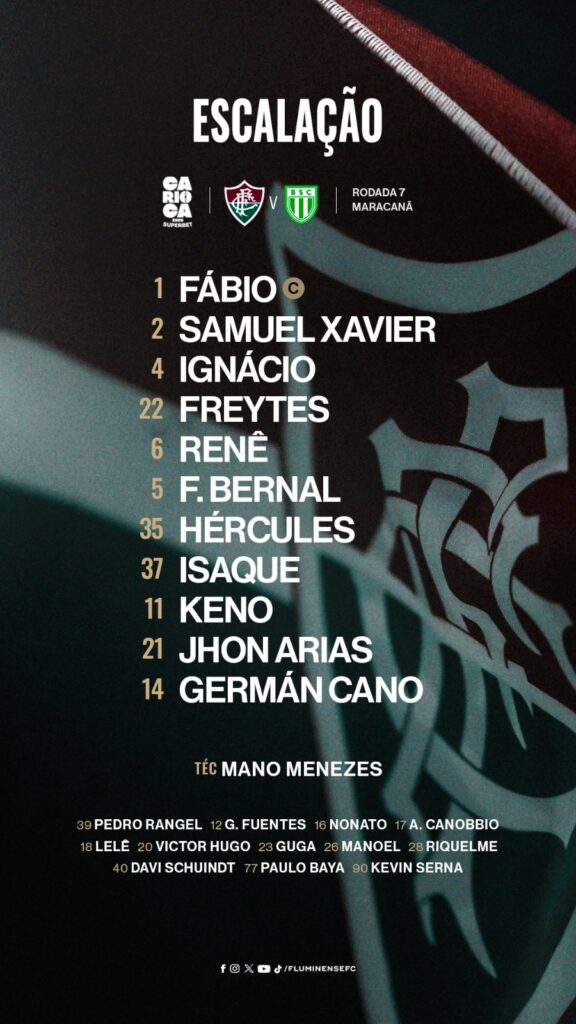 Fluminense escalado para jogo contra o Boavista no Maracanã