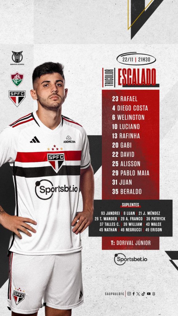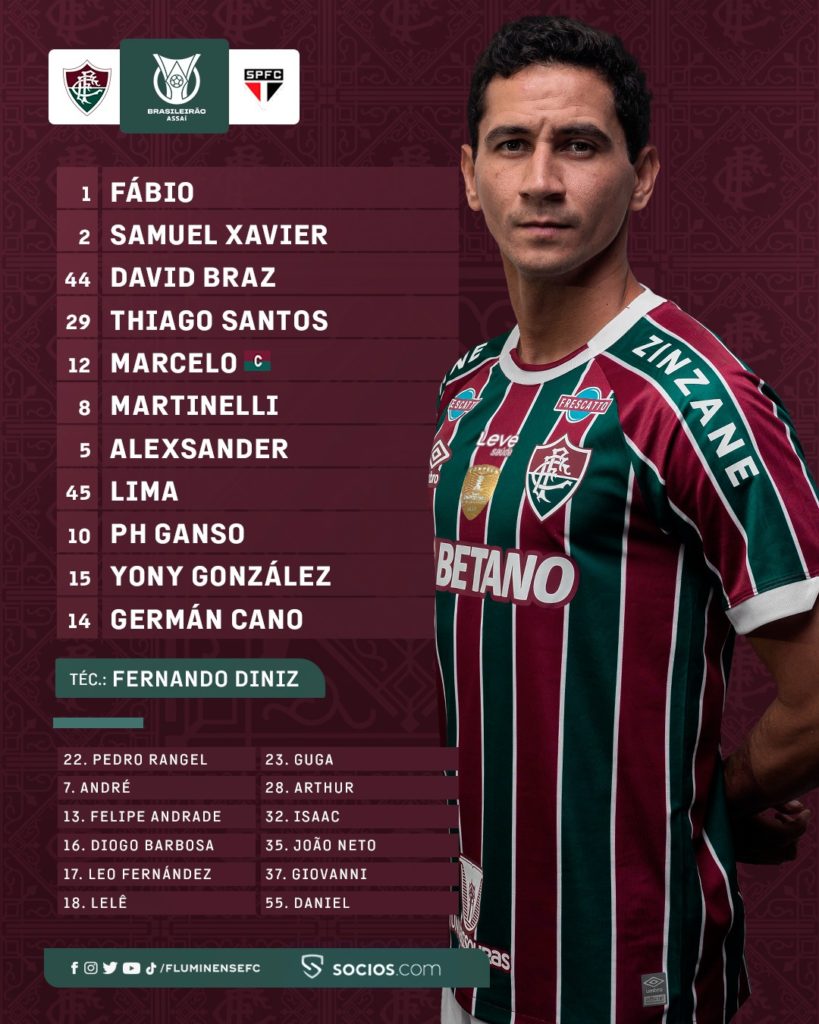 Fluminense está escalado para a partida contra o São Paulo pelo Brasileirão
