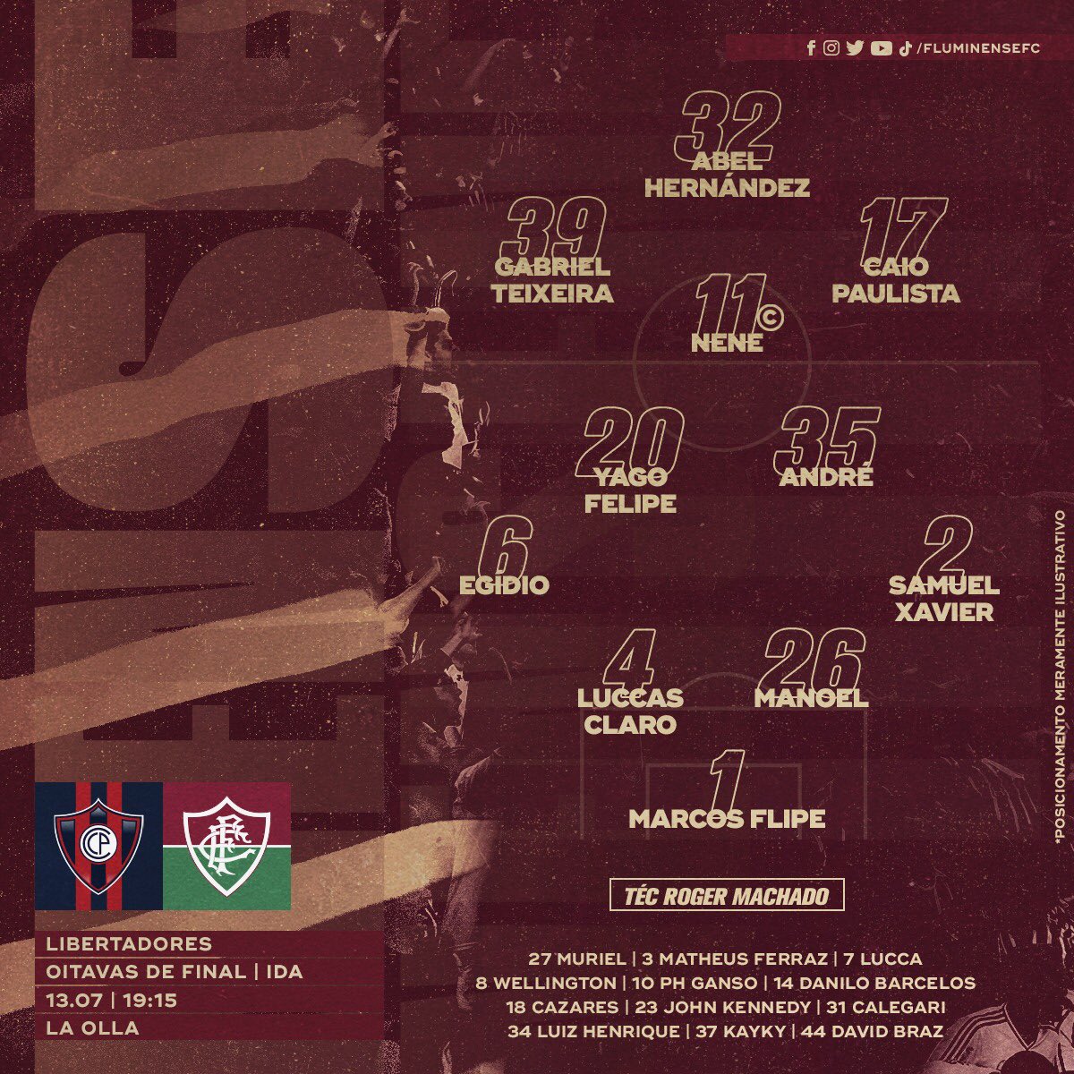 Fluminense está escalado para enfrentar o Cerro Porteño