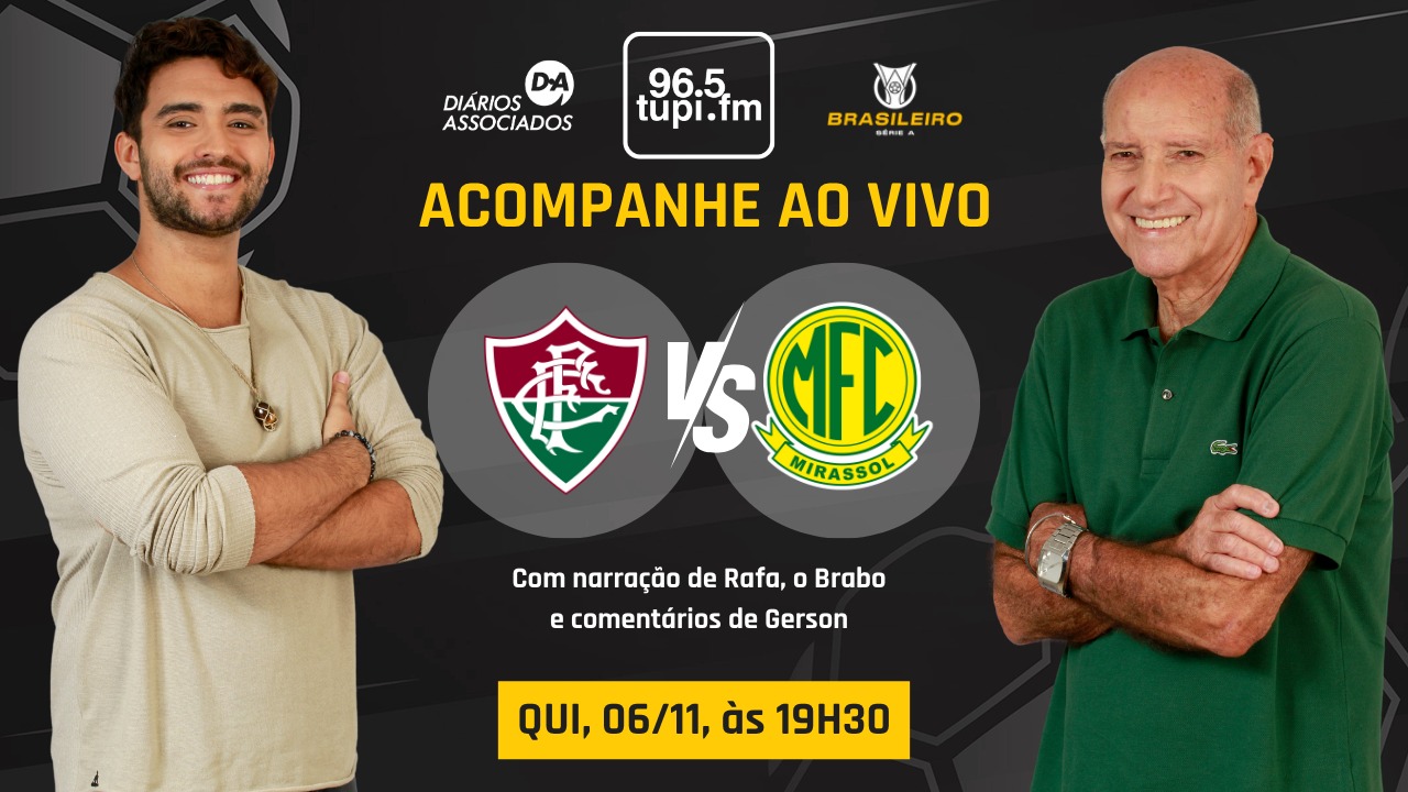 Nesta quinta-feira (6), Fluminense e Mirassol se enfrentam no Maracanã pela 32ª rodada do Campeonato Brasileiro Série A. A bola rola às 19h30, com transmissão da Super Rádio Tupi a partir das 19h10. A jornada esportiva terá narração de Rafa, o Brabo, e comentários de Gerson Canhotinha de Ouro. O torcedor tricolor acompanha todos os detalhes de Fluminense e Mirassol ao vivo.