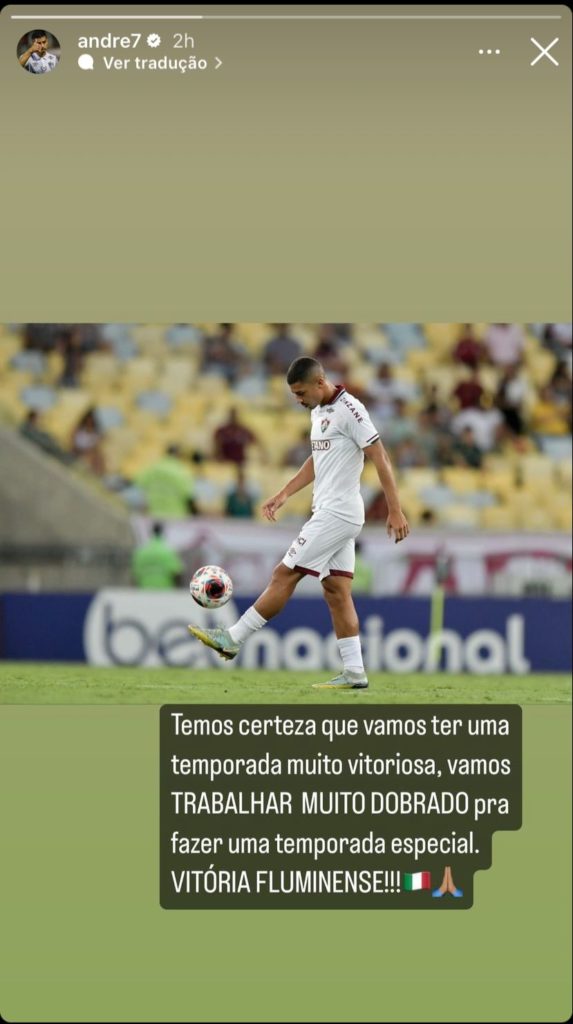 “Temos certeza que vamos ter uma temporada muito vitoriosa. Vamos TRABALHAR MUITO DOBRADO para fazer uma temporada especial. VITÓRIA FLUMINENSE!!!”, escreveu André.