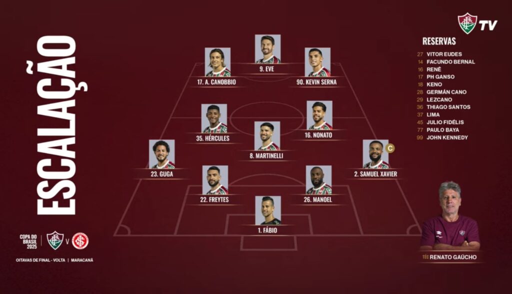 Fluminense e Internacional voltam a se enfrentar nesta quarta-feira (6), às 21h30, no Maracanã, pela partida de volta das oitavas de final da Copa do Brasil. O torcedor poderá acompanhar Fluminense x Internacional ao vivo com a transmissão especial da Super Rádio Tupi, logo após o fim de Atlético-MG x Flamengo. O técnico Renato Gaúcho colocou Canobbio e Manoel nos lugares de Soteldo e de Thiago Silva.