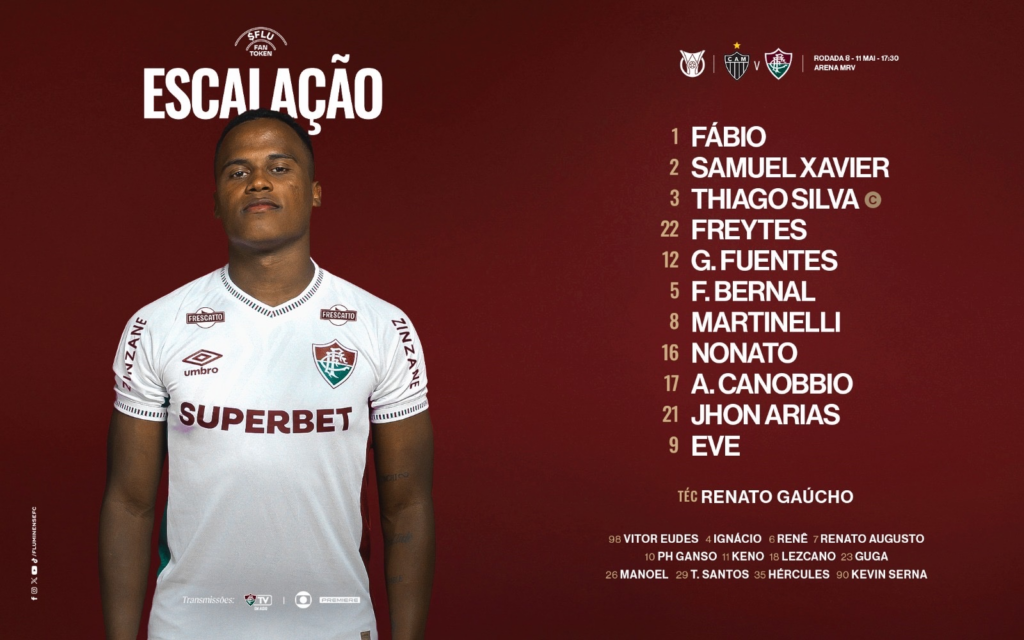 Neste domingo (11), o Fluminense enfrenta o Atlético-MG na Arena MRV, pela oitava rodada do Brasileirão, às 17h30. O treinador Renato Gaúcho realizou algumas mudanças no time: Thiago Silva, Bernal e Nonato entram nos lugares de Ignácio, Hércules e Ganso.