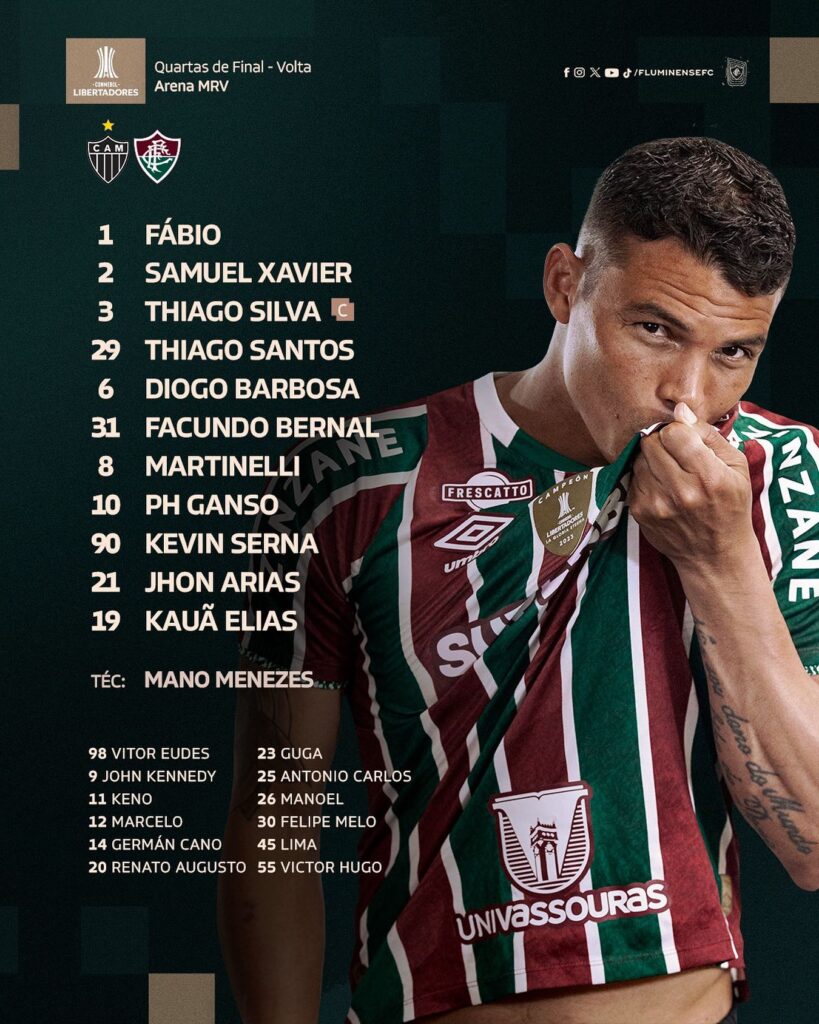 Fluminense está escalado para enfrentar o Atlético-MG pela Libertadores