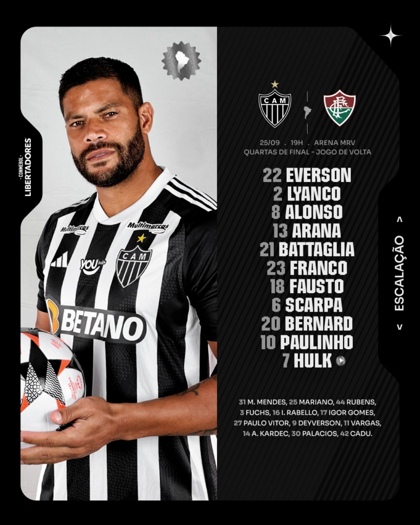 Equipes se enfrentam nesta quarta-feira (25), às 19h, na Arena MRV, pelo duelo de volta das quartas de final