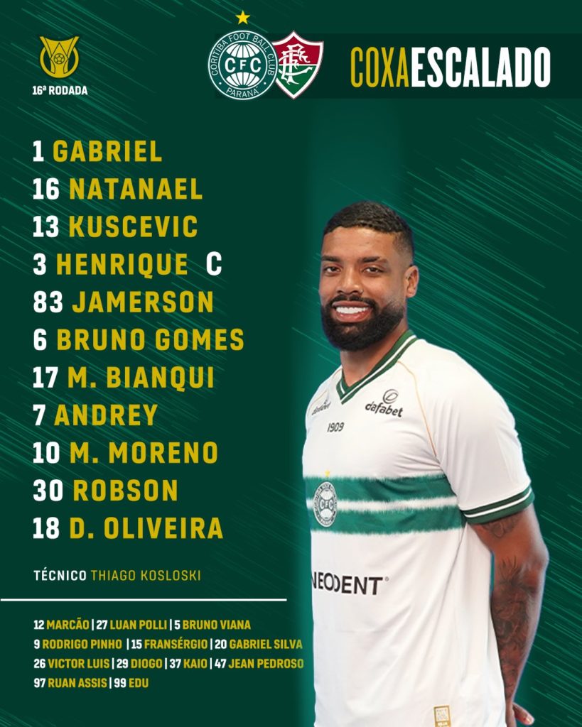 Fluminense está escalado para enfrentar o Coritiba pelo Brasileiro