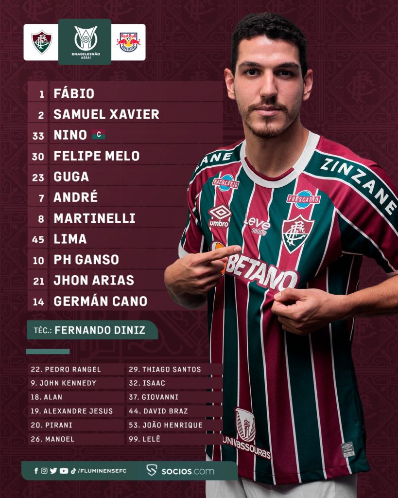 Fluminense está escalado para partida contra o Bragantino pelo Brasileirão; confira
