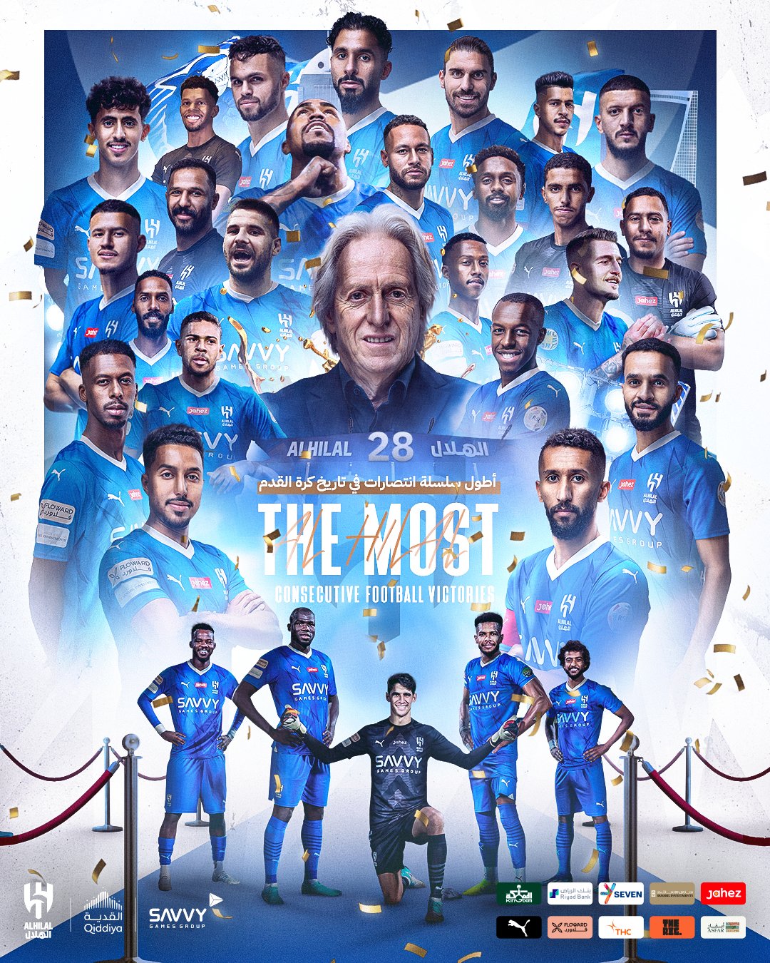 Em uma terça-feira histórica para o futebol, o Al-Hilal venceu o Al-Ittihad por 2 a 0, fora de casa, em jogo de volta das quartas de final da Liga dos Campeões da Ásia, e chegou à sua 28ª vitória seguida, batendo o recorde mundial.