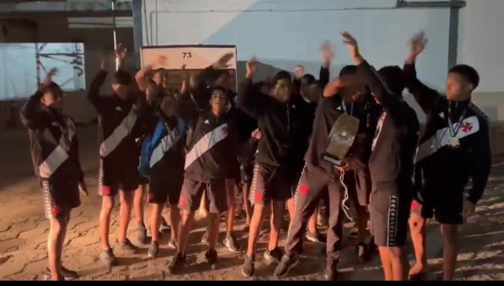 Na chegada a São Januário, muita alegria dos responsáveis com a garotada e famoso “Casaca” foi puxado. O Clube através das redes sociais postou um video e um comunicado: