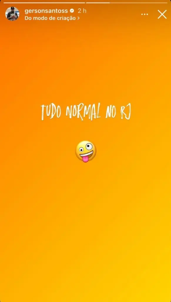 Recém-chegado ao Zenit-RUS, Gerson não escondeu a comemoração pela vitória de 1 a 0 do Flamengo sobre o Fluminense, neste domingo (20). Vindo do banco, Pedro, que voltou a ser relacionado, marcou o gol no fim dos 90 minutos, pela 15ª rodada da Série A. O ex-volante da Gávea publicou storie em seu perfil no Instagram, com a frase “Tudo normal no RJ”.