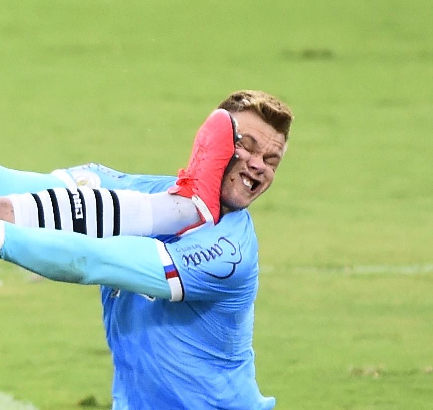 Goleiro do Bahia leva 5 pontos no rosto após choque com Castan