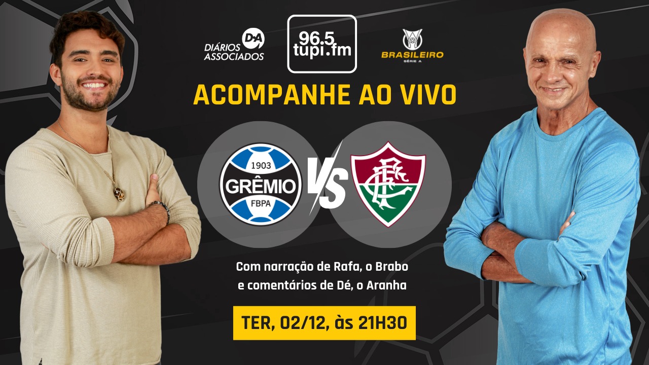 Nesta terça-feira (2), Grêmio e Fluminense se enfrentam na Arena do Grêmio em partida válida pela 37ª rodada do Campeonato Brasileiro Série A. A bola rola às 21h30, logo após Vasco e Mirassol, com transmissão da Super Rádio Tupi. A narração será de Rafa, o Brabo, e os comentários ficam por conta de Dé Aranha. Assim, o torcedor poderá acompanhar todos os detalhes de Grêmio e Fluminense ao vivo.