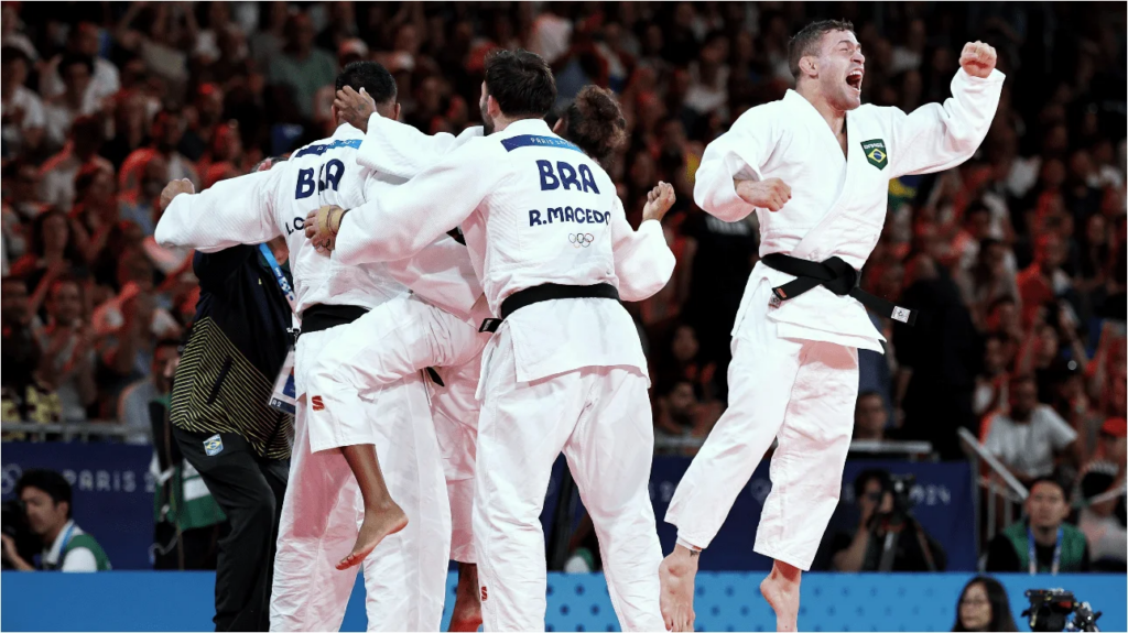 Foi a primeira vez na história dos Jogos Olímpicos que o Brasil conquista medalha na disputa por equipes no judô