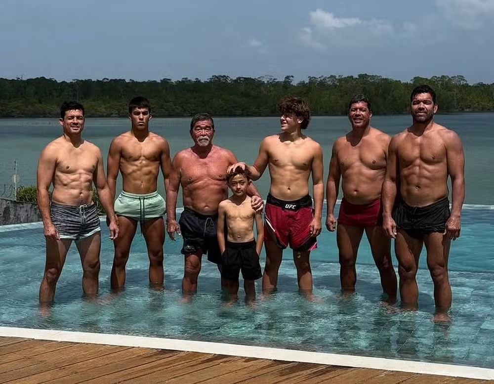 O ex-campeão dos meio-pesados do UFC, Lyoto Machida, protagonizou um momento especial ao lado do pai, Yoshizo Machida, e dos irmãos Chinzo e Take, em uma foto à beira da piscina que chamou atenção dos fãs. A reunião simboliza o legado familiar do “Karate Machida”, estilo que fez história no MMA mundial com base no caratê Shotokan e movimentos de esquiva característicos.