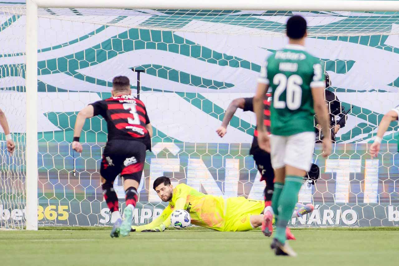 Embora consiga ganhar o jogo, os mandantes não terão vida fácil. Afinal, a tecnologia indica que Pedro abrirá o placar no início do primeiro tempo, mas Vitor Roque deixará tudo igual antes do intervalo. Já na segunda etapa, os donos da casa, apoiados em massa pelas arquibancadas, chegarão à rede novamente com Arrascaeta, perto dos 30 minutos. O Verdão pressionará até o fim pelo empate, só que sem sucesso.