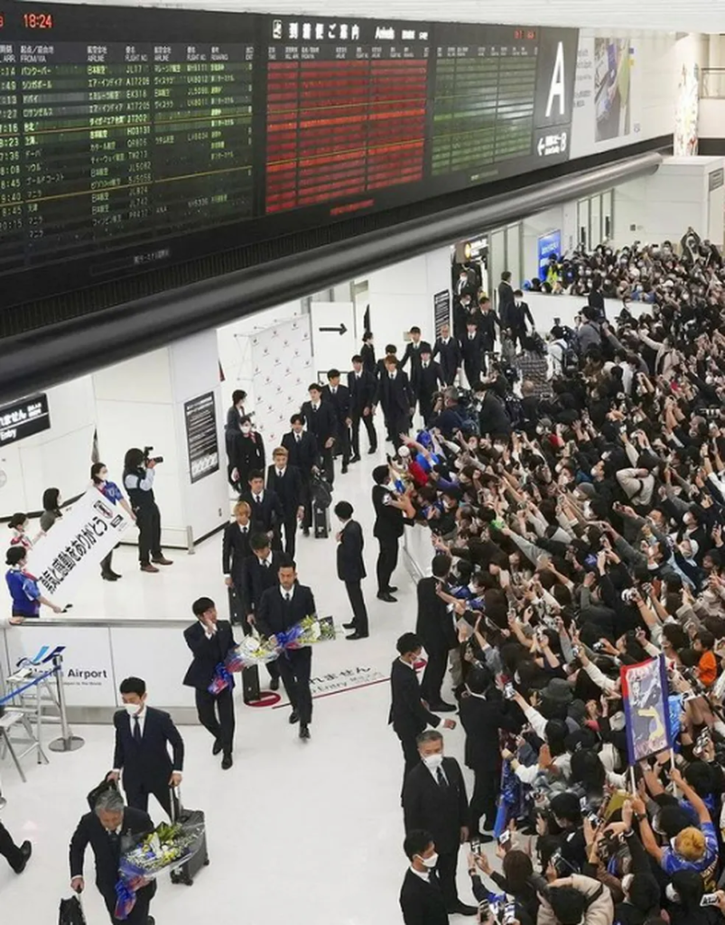 Mesmo perdendo a chance de realizar a melhor campanha do país em Copas do Mundo, a seleção japonesa foi recebida com muita festa no retorno da delegação ao país. Os torcedores lotaram o aeroporto Haneda, principal da capital japonesa. Na última segunda-feira, os “samurais azuis” foram eliminados nos pênaltis para a Croácia, por 3 a 1, após o empate em 1 a 1 no tempo normal.