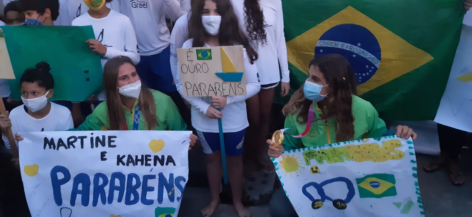 “A gente sempre sentiu esse calor humano, mesmo lá no Japão. As mensagens que a gente recebeu de apoio e de força da torcida foi gigante. A gente só tem que agradecer a todos que torceram pela gente. Essa medalha é do país, é de Niterói, é do Rio e de todos os velejadores que sabem o quanto a gente ama esse esporte”, completou Kahena.
