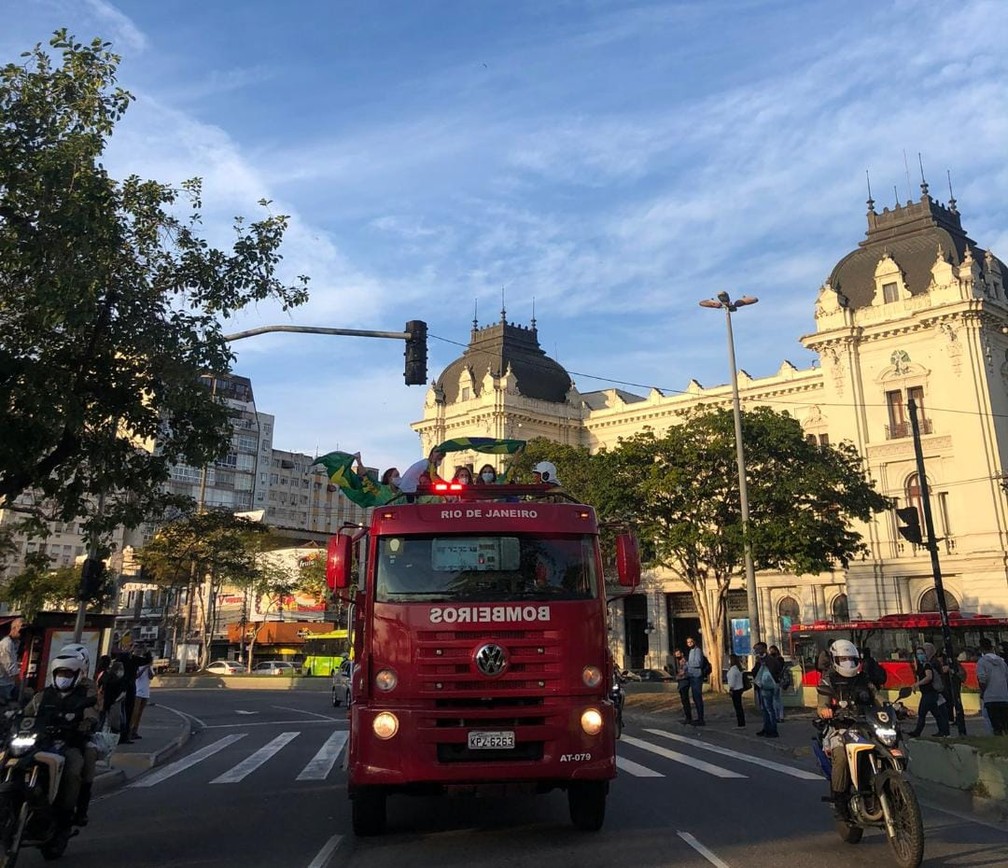 Atletas desfilaram em um caminhão aberto do Corpo de Bombeiros na tarde desta sexta-feira (06)