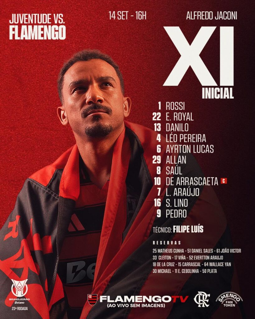 Do outro lado, o Juventude aposta no fator casa e no apoio da sua torcida. O time gaúcho costuma se impor em Caxias do Sul e quer usar esse trunfo para segurar o Flamengo, além de somar pontos importantes na luta para se manter longe da parte de baixo da tabela.