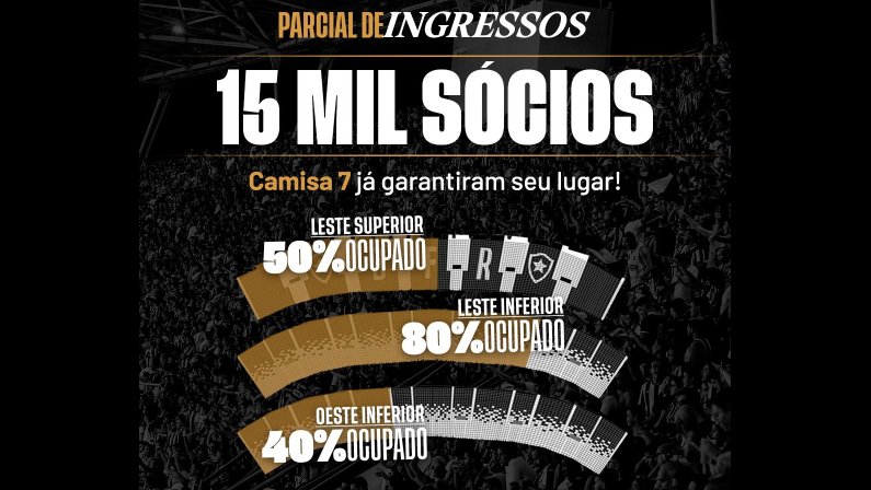 De acordo com o clube, o setor Leste Inferior já está 80% ocupado, o Leste Inferior 50% e o Oeste Inferior, 40%. Por enquanto, apenas sócios-torcedores dos planos Glorioso, Alvinegro e Preto podem comprar ingressos.