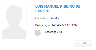 O técnico português Luís Castro teve o nome publicado no BID (Boletim Informativo Diário) da CBF nesta quinta-feira e, poderá dirigir o Botafogo em campo contra o Ceará, domingo (17), às 19h, na Arena Castelão, em Fortaleza, pela segunda rodada do Campeonato Brasileiro.