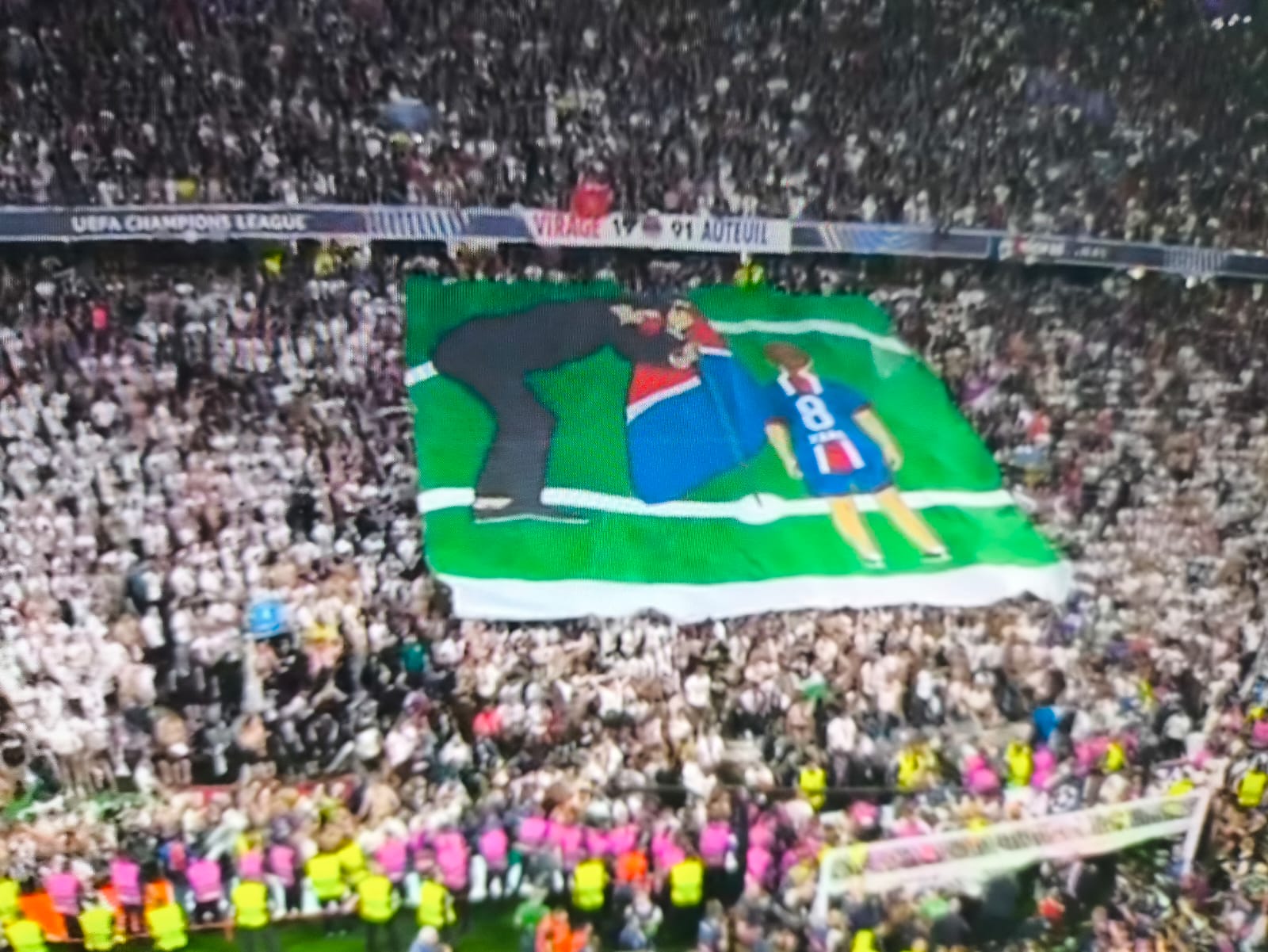 Quem também homenageou a filha do treinador foi a torcida do PSG. Durante a festa, um lindo bandeirão foi esticado na arquibancada. Nele, Luis Enrique e a filha estavam retratados num momento de alegria.
