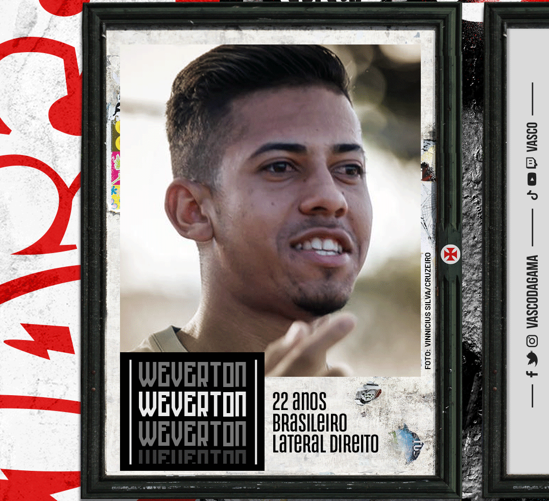 O Vasco anunciou, na manhã desta segunda-feira (10), a contratação de mais um reforço para a temporada 2022: o lateral-direito Weverton. O jogador de 22 anos foi emprestado pelo RB Bragantino e assinou contrato até o final da temporada. O anúncio foi feito nas redes sociais e no site oficial do clube.