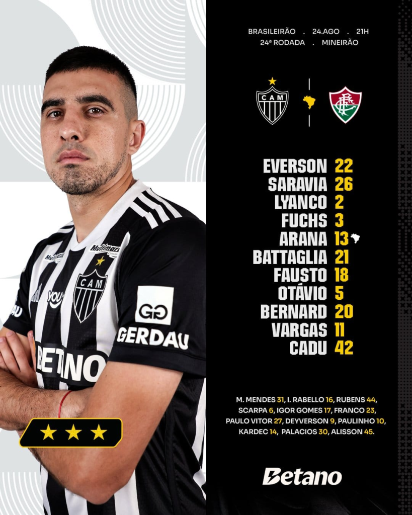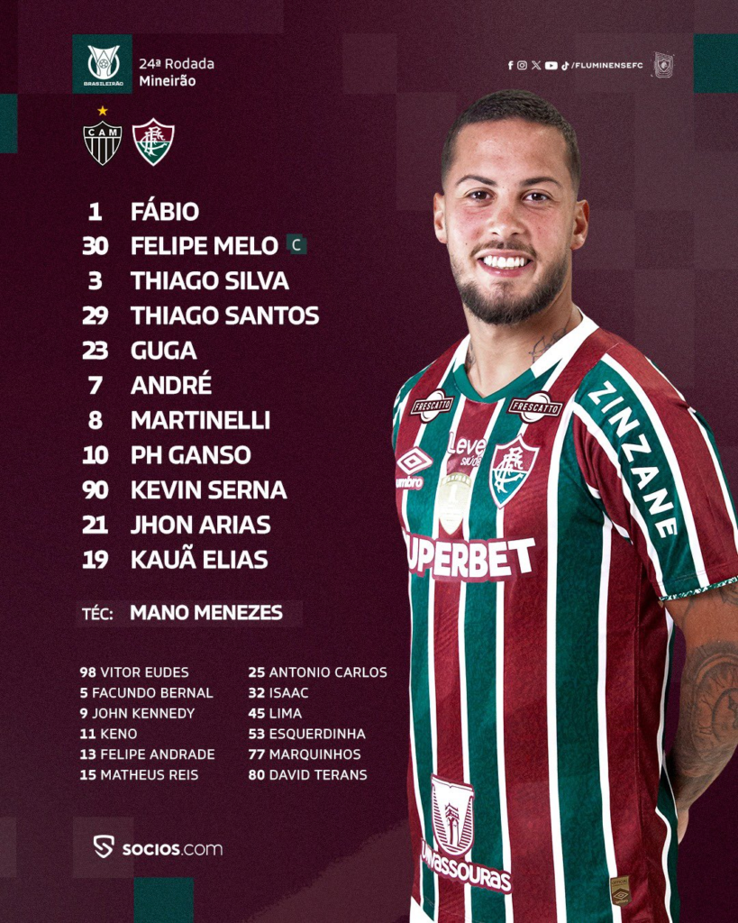O Fluminense está definido pelo técnico Mano Menezes para enfrentar o Atlético-MG, fora de casa, no Mineirão. Com três zagueiros, o técnico do Tricolor colocou Felipe Melo de volta ao time titular, junto com Thiago Silva e Thiago Santos.