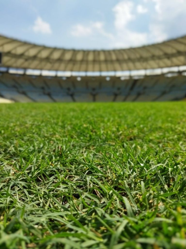 Grama híbrida com 90% natural e 10% sintética está sendo colocada no estádio