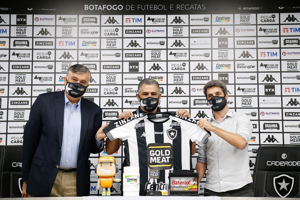 “É uma satisfação muito grande estar falando pela primeira vez como treinador do Botafogo. Queria agradecer ao presidente pela oportunidade de trabalhar num clube com a grandeza e história do Botafogo. Prometo muita entrega e dedicação. Vou me dedicar diuturnamente para conquistarmos juntos os objetivos. Objetivo principal é o acesso à Série A do Botafogo”, disse.