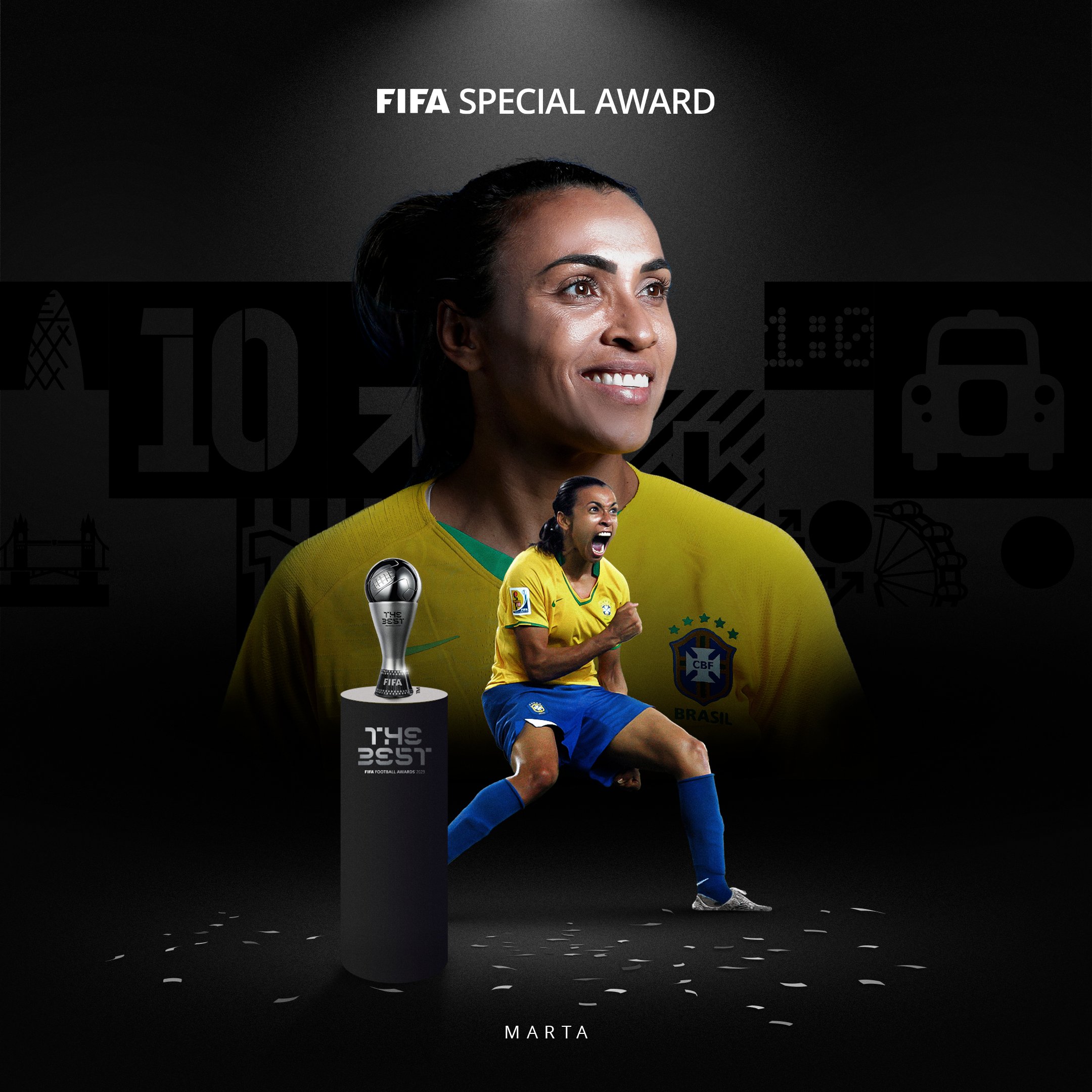 Marta é um dos maiores nomes do futebol feminino e é a maior vencedora do The Best, com seis troféus.